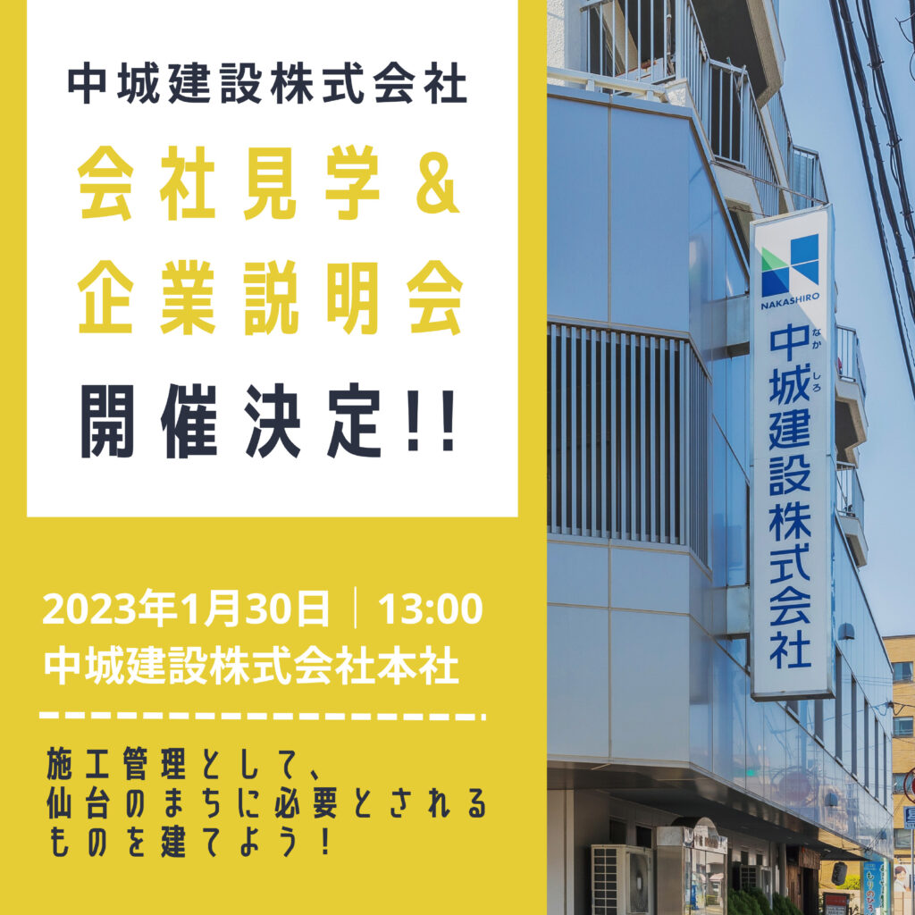 1月30日(月)24卒生向け会社見学&企業説明会開催のお知らせ 2023/01/23お知らせ 2024年度卒 イベント まちをワクワクさせる建設会社 リクルート ワクワク 新卒向け 新卒採用 職場環境 会社見学&企業説明会を開催します。 昨年12月にリノベ工事が完成した新しい社屋での会社見学&企業説明会となります。 中城建設について詳しく知りたい方、興味をお持ちの方はぜひご参加ください! 日時:1月30日(月)13時~ 場所:本社(仙台市宮城野区幸町2-23-1) 参加ご希望の方は中城建設公式LINEから「参加希望」とお送りください。 お待ちしています!